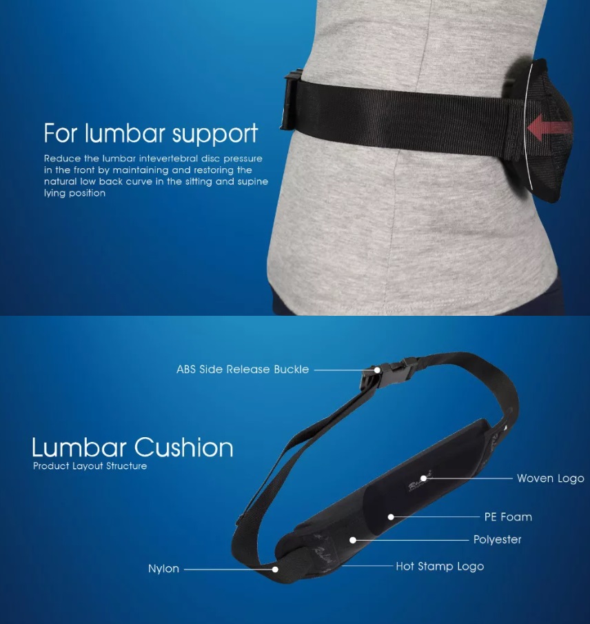 於坐著及仰臥時維持及恢復腰椎生理弧度,減少腰椎間盤前方承受的壓力,有效改善因椎間盤膨出、突出或腰椎生理弧度減低所引致的腰背痛